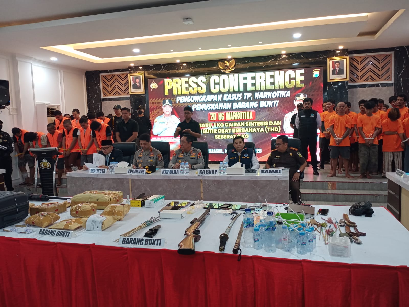 Sementara untuk wilayah hukum Polrestabes Makassar, khusus bulan November 2025, tercatat: 59 LP, 100 tersangka, 20 kg narkotika berbagai jenis
