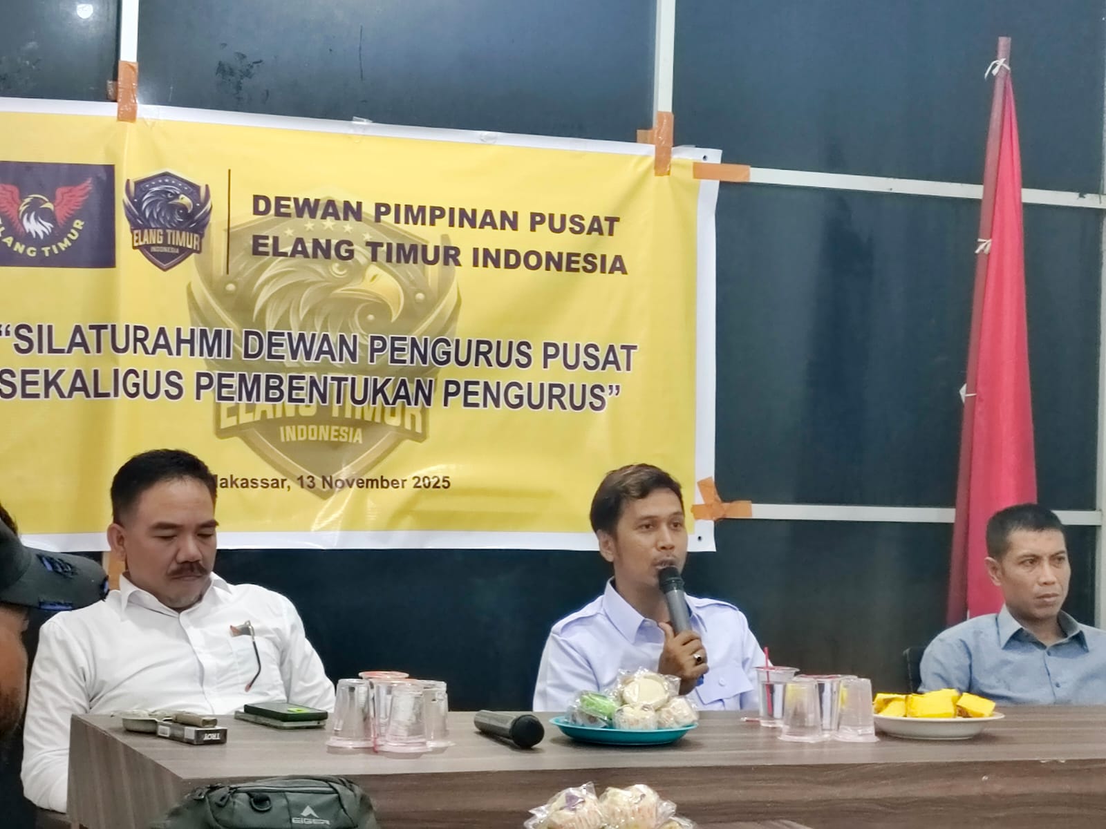 Makassar, lontaracelebes,id-Dewan Pimpinan Pusat (DPP) Elang Timur Indonesia menggelar kegiatan silaturahmi sekaligus pembentukan struktur pengurus pusat di Kantor Lintas Mata Nusantara, Jalan Gunung Bawakaraeng, Kota Makassar, Kamis (13/11/2025).U