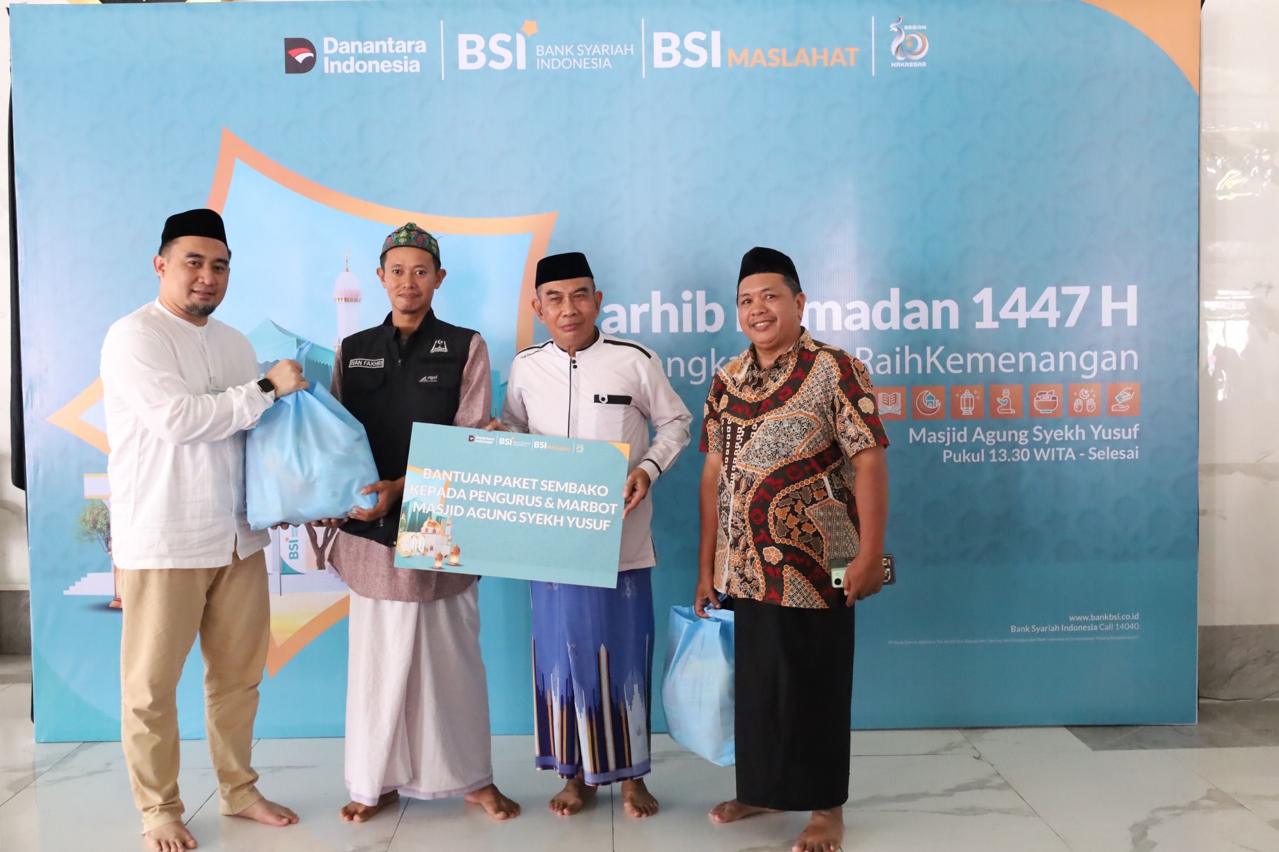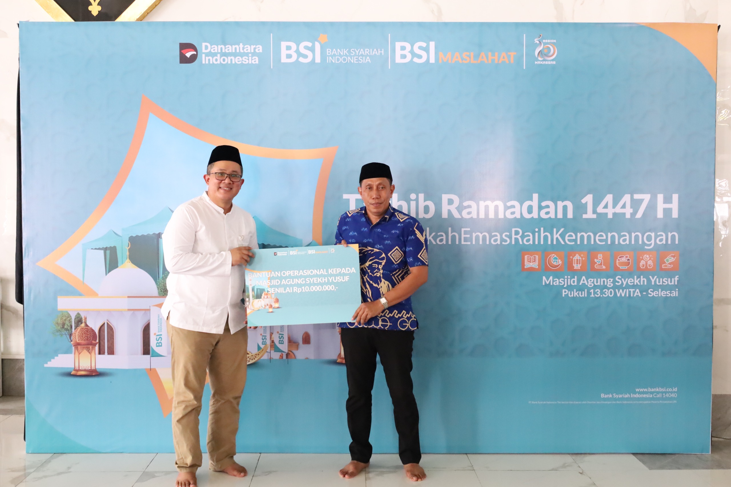 Gowa,Lontaracelebes,id-Bank Syariah Indonesia (BSI) Regional Makassaar melaksanakan kegiatan Tarhib Ramadhan di Masjid Agung Syekh Yusuf Gowa, sekaligus menyerahkan bantuan Operasional dan paket sembako kepada jamaah Masjid Agung Syekh Yusuf Gowa pada Jumat (20/2/2026).