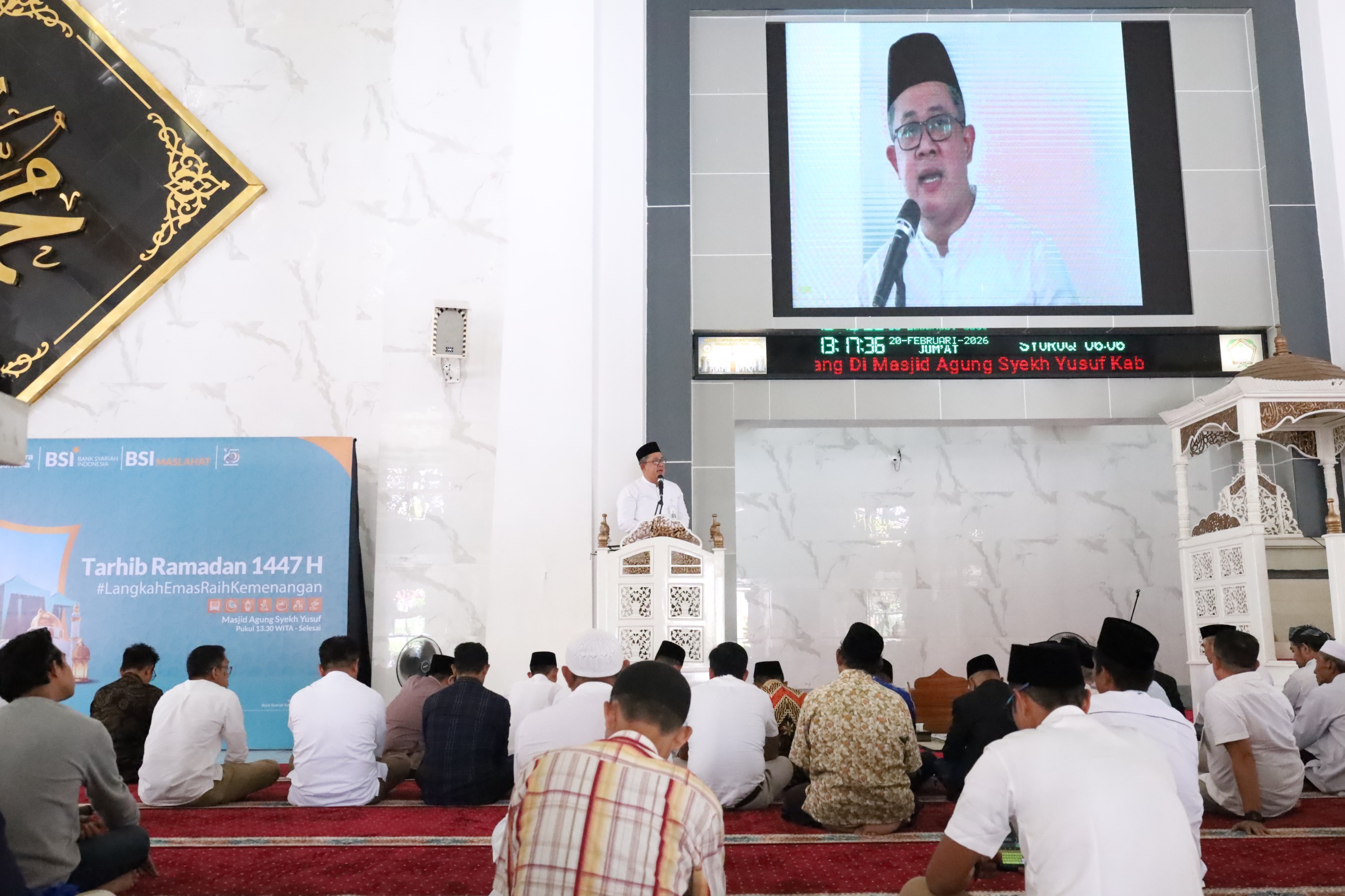 Acara yang berlangsung khidmat tersebut dihadiri oleh jajaran manajemen dan Pegawai BSI Makassar, tokoh agama, serta jamaah Masjid Agung Syekh Yusuf Gowa.