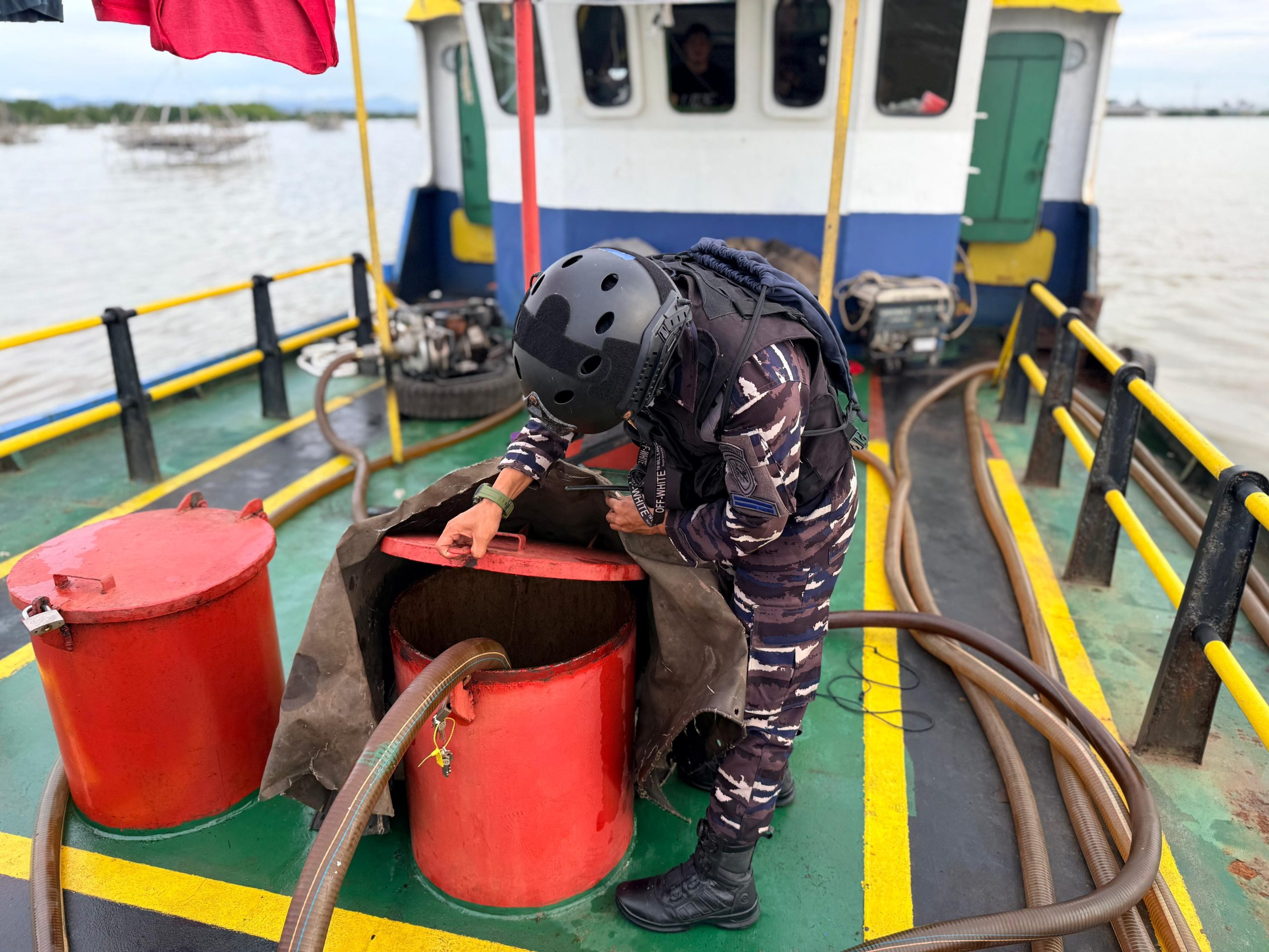 Petugas berhasil menghentikan aktivitas pendistribusian BBM secara ilegal dari mobil tangki ke kapal muatan minyak Self Propelled Oil Barge (SPOB) yang tengah berlangsung secara sembunyi-sembunyi.
