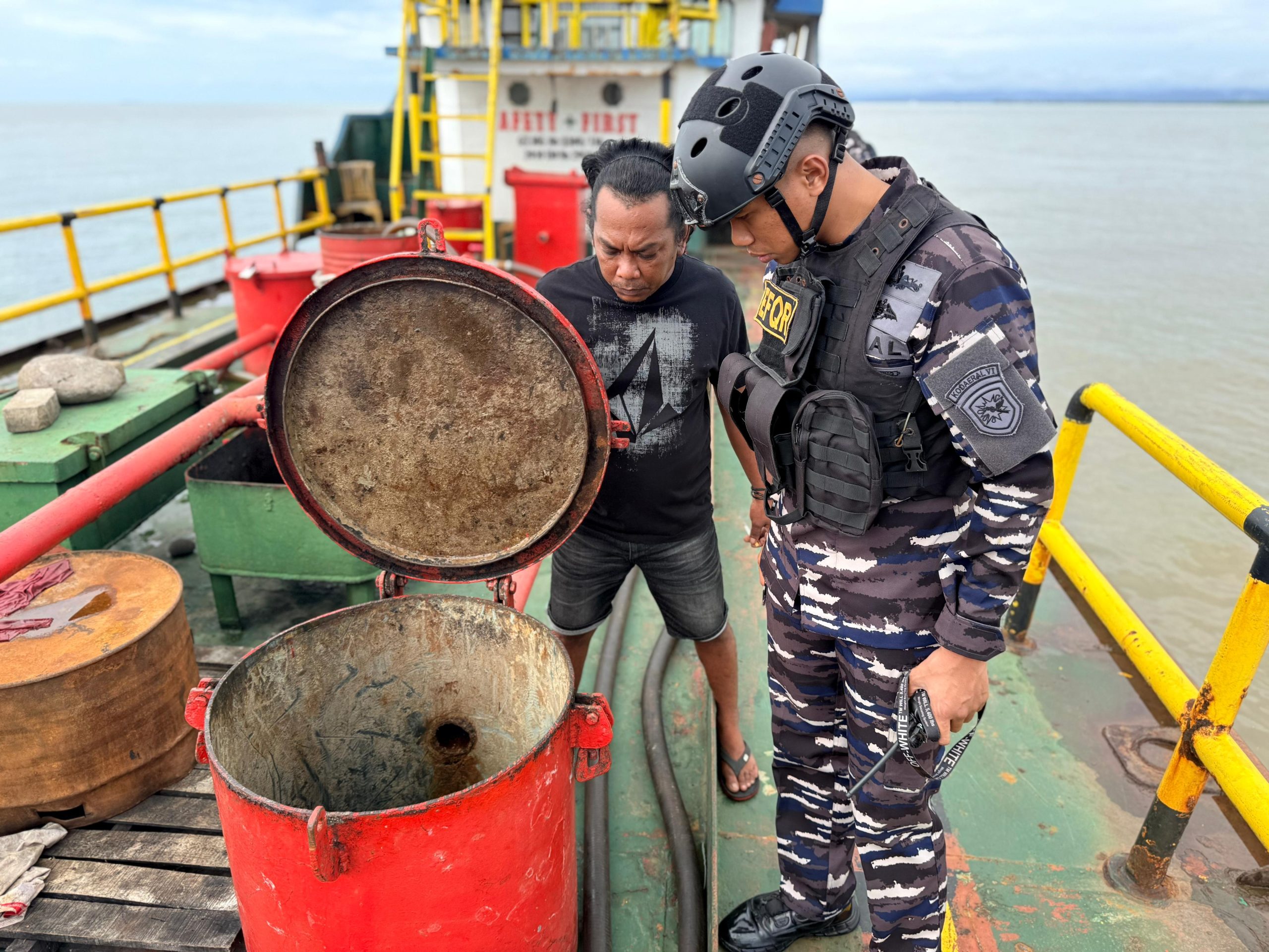Petugas berhasil menghentikan aktivitas pendistribusian BBM secara ilegal dari mobil tangki ke kapal muatan minyak Self Propelled Oil Barge (SPOB) yang tengah berlangsung secara sembunyi-sembunyi.