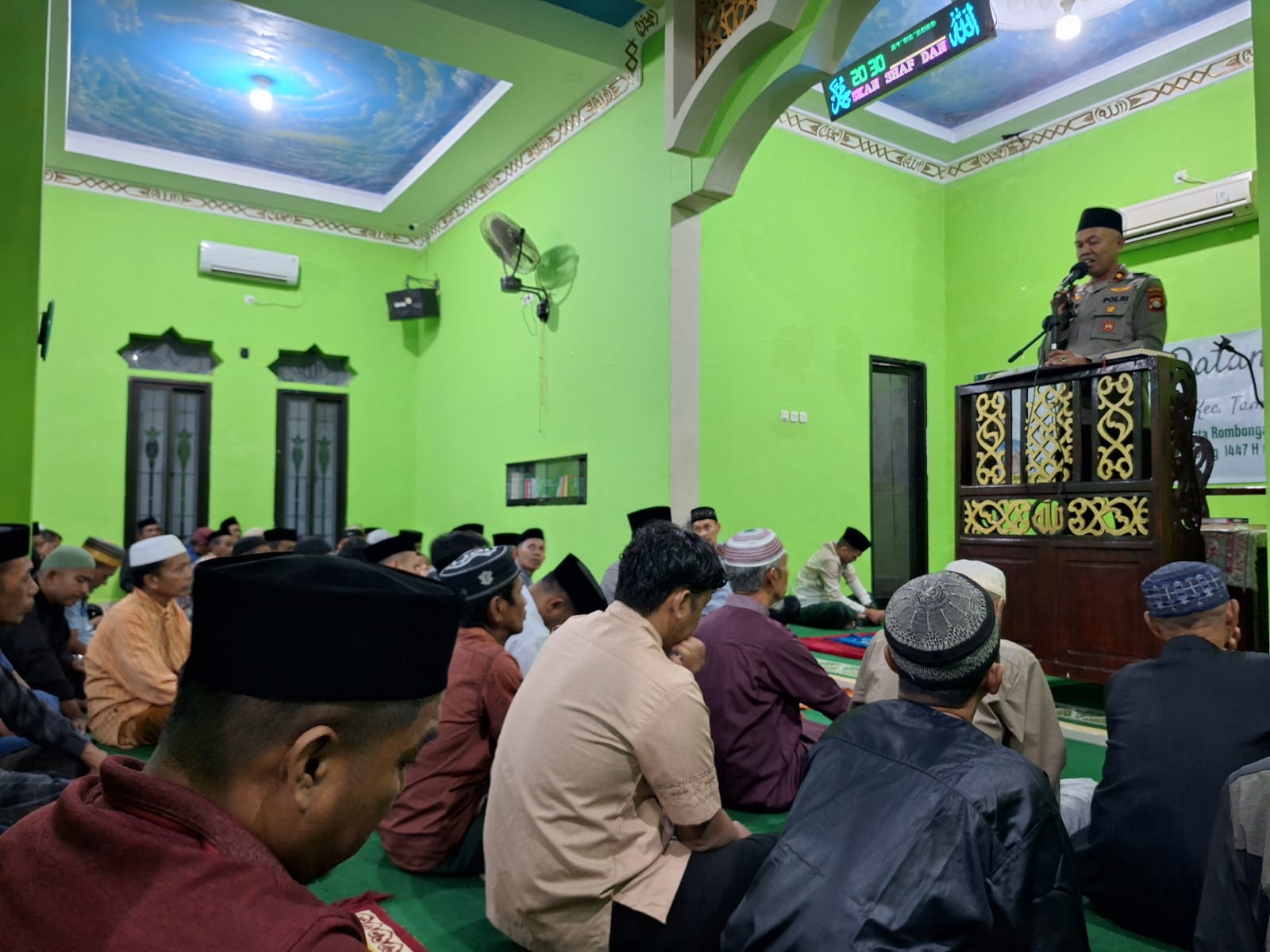 Dalam kegiatan tersebut, Kapolsek Tamalate hadir bersama unsur pemerintah kecamatan Tamalate, para tokoh agama, tokoh masyarakat, dan Para Ketua RT/RW, serta masyarakat setempat untuk melaksanakan ibadah Sholat Isya dan Tarawih berjamaah, dilanjutkan dengan sambutan serta penyampaian pesan-pesan kamtibmas kepada warga.